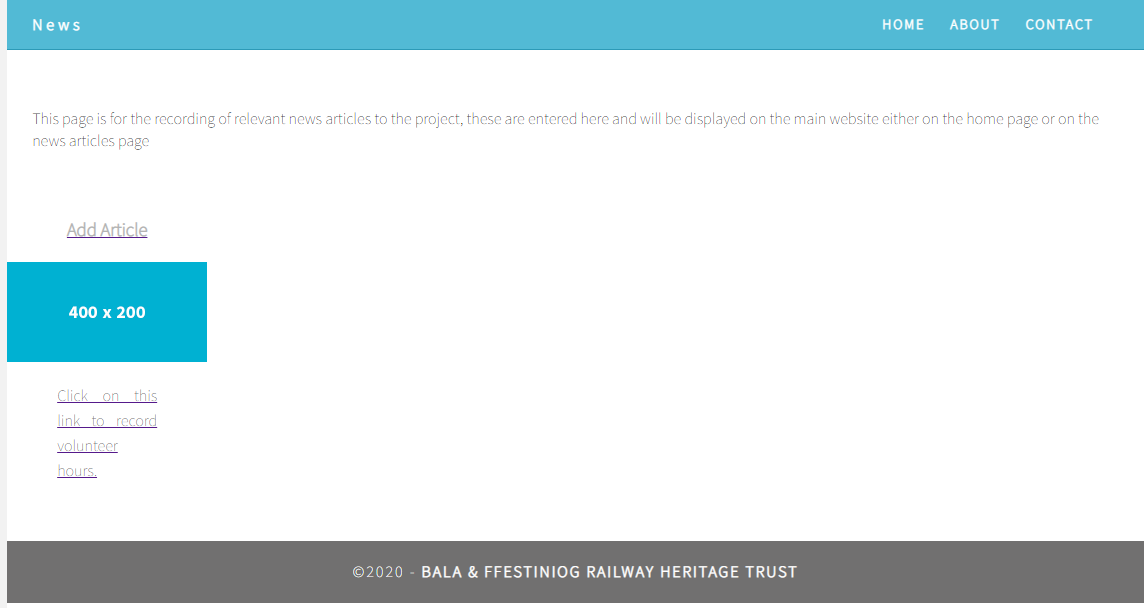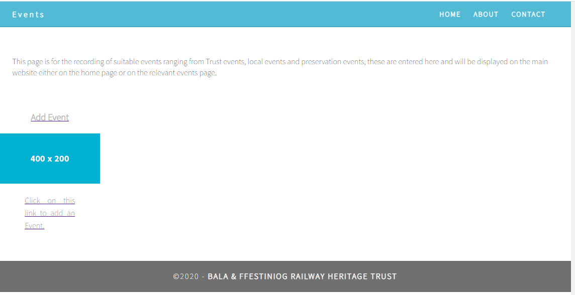 Welcome to the administration panel for the Bala & Ffestiniog Railway Heritage Trust. This panel is designed to provide quick links to the various administration groups and pages used by the Trust to carry out its works. Any issues please contact the Chairman.